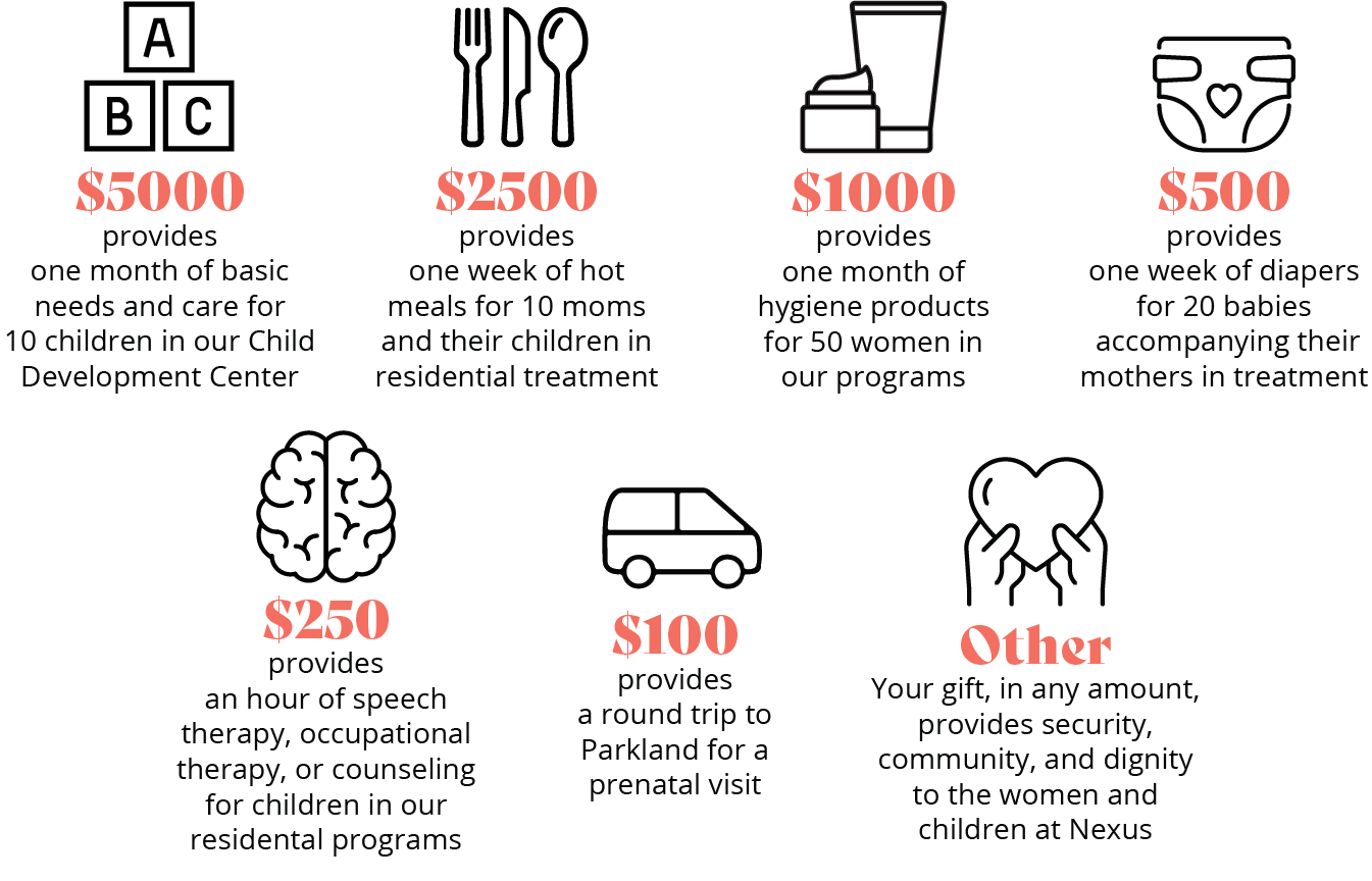We are so thankful for everyone who supports our mission and helps improve the lives of thousands of women and children each year. Please consider joining us by making a donation to support women and their children who are on their recovery journey. Your gift will bring security, community and dignity to the women and children at Nexus.